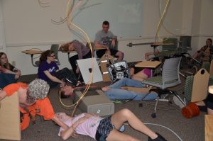 A group of people were at a conference at a local school when a fire starts. The power went out in the lab area. Multiple people were injured. There were approximately 30 to 45 patients, but the exact count was unclear at the time. Some victims escaped and are at a safe place across the street. The area was cleared and determined safe by the fire department. The goal for the students was to safely evacuate the injured individuals to the appropriate area, and provide appropriate interventions based on their assessment, the injuries and needs of each patient. The fire department/EMS were onsite to help and assist students in triaging, evaluating, and safely transporting patients to the designated area.